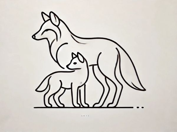 Elegant Line Art of Coyote and Cub: Minimalist Black and White