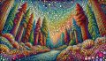 Vibrant Fusion of Fauvism and Pointillism in Muir Woods Artwork