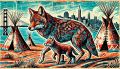 Expressive Woodblock Print of Coyote with Cub in San Francisco