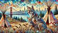 Artistic Representation of Coyote Family with San Francisco Backdrop
