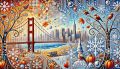 Vibrant Fusion of Seasons: San Francisco Skyline with Dadaist Flair