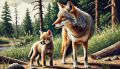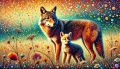 Vibrant Wilderness: A Coyote and Its Cub in Impressionist Art