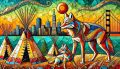 Vivid Neo-Expressionist Depiction of Coyotes in Urban San Francisco