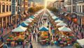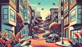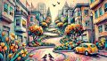 Vibrant Watercolor of a Bustling San Francisco Street in Spring