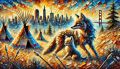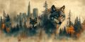 Majestic Wolves Amidst Autumn Forest and Urban Skylines