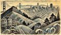 Waves of San Francisco: Blending Urban Life with Abstract Ukiyo-e