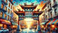 Enchanting Chinatown Gateway Illuminated by Lanterns in Impressionist Style