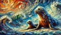 Whimsical Sea Lions Amidst Swirling Waves and Spirited Skies