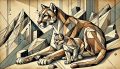 Geometric Splendor of Mountain Lion and Cub in Cubist Art