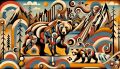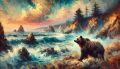 Surreal Encounter: Grizzly Bear and Cub Amidst Abstract Wilderness