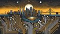 San Francisco Skyline Meets Futuristic Circuit Board Design