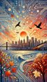 Vibrant Urban Tapestry: San Francisco Skyline Fused with Nature and Art