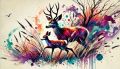 "Splashes of Nature: Abstract Mule Deer and Fawn in Meadow"