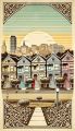 Vintage Art Depiction of Painted Ladies with San Francisco Skyline