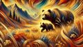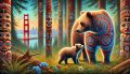 Golden Meadows of California: Grizzly Bear and Cub Amongst Swirling Colors