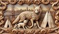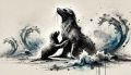 Serene Brush Calligraphy of Coyote and Cub in San Francisco