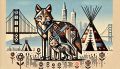 Geometric Coyotes against San Francisco Skyline in Artistic Print
