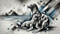 Geometric Harmony: A Cubist Sea Lion and Cub in Monochrome