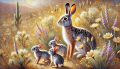 Mother Jackrabbit with Her Young Amidst Desert Blooms
