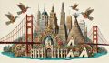 Enchanting Artistic Rendition of San Francisco's Iconic Landmarks
