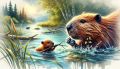 Tranquil Waters: A Beaver Family's Riverside Retreat Art Print