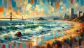 Vibrant Waves and Cityscape: An Abstract Impression of San Francisco's Ocean Beach
