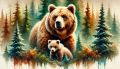 Mother's Embrace: A Vivid Depiction of Grizzly Bears in Art