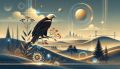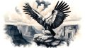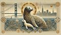 Artistic Depiction of an Eagle in a Stylized Californian Landscape