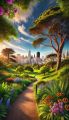 Whimsical Interpretation of San Francisco's Presidio in Abstract Impressionism