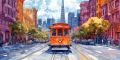 Hand Drawing Vibrant San Francisco Street Scene with Iconic Cable Car
