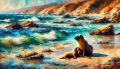Ocean Embrace: A Sea Lion and Pup Amidst Surreal Waves
