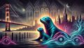 Enchanting Brush Calligraphy of River Otters Amidst San Francisco Landmarks