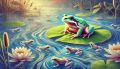 Enigmatic Pacific Tree Frog Amidst Lilies and Rippling Water