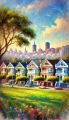 Vibrant Impressionist View of San Francisco's Famed Painted Ladies