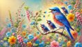 Delightful Western Bluebirds Enthrall in a Lush Springtime Garden