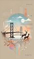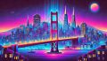 Dreamy Decopunk Artwork of San Francisco's Iconic Skyline and Bridge