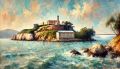 Impressionist Strokes of Alcatraz Island Amidst Turbulent Waters