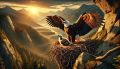 Majestic Bald Eagle and Eaglet Overlooking a Misty Mountain Sunrise