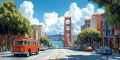 Iconic San Francisco Streetscape Featuring the Golden Gate Bridge