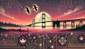 Surreal Sunset at Richmond-San Rafael Bridge with Circuitry Elements