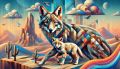 Surreal Desert Dreamscape: Cubist Coyotes under a Pastel Sky
