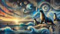 Abstract Gothic Vision of Alcatraz Island with Impressionistic Flare