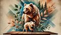 Ethereal Wilderness: A Mother Grizzly Bear and Cub in Abstract