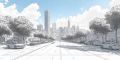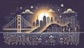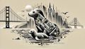Stylized Panorama of San Francisco in Monochrome Sketch Art