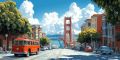 Iconic San Francisco Scene with Golden Gate Bridge and Vintage Bus