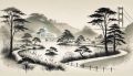 Serene Monochrome Visions of Golden Gate Park in Sumi-e Style