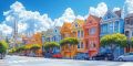 Vibrant Hues of San Francisco's Iconic Victorian Houses Under Sunlit Skies