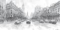 Bustling San Francisco Streets in Monochrome Artistic Rendering