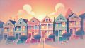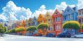 Vibrant Artistic Depiction of Iconic San Francisco Victorian Houses