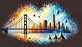 Stylized Artistic Rendering of the Golden Gate Bridge in San Francisco